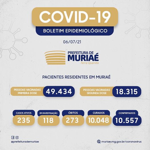 Balanço da pandemia do novo coronavíruis em Muriaé, até 06/07/2021: