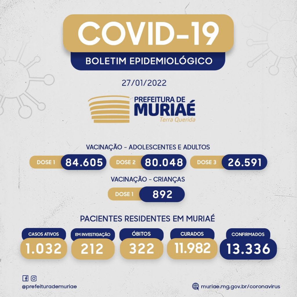 Balanço da pandemia em Muriaé, até 27/01/2022: