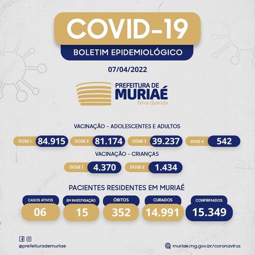 Balanço da pandemia em Muriaé, até 07/04/2022: