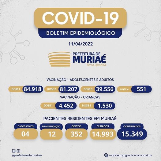 Balanço da pandeia em Muriaé, até 11/04/2022